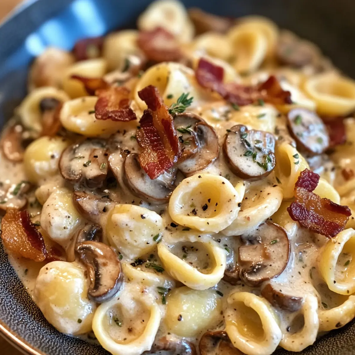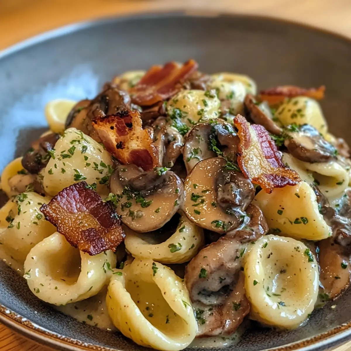 Herzhafte Textur: Die Orecchiette fangen die cremige Sauce ein und bieten zusammen mit knusprigem Speck oder Pilzen ein Geschmackserlebnis, das jeden begeistert.