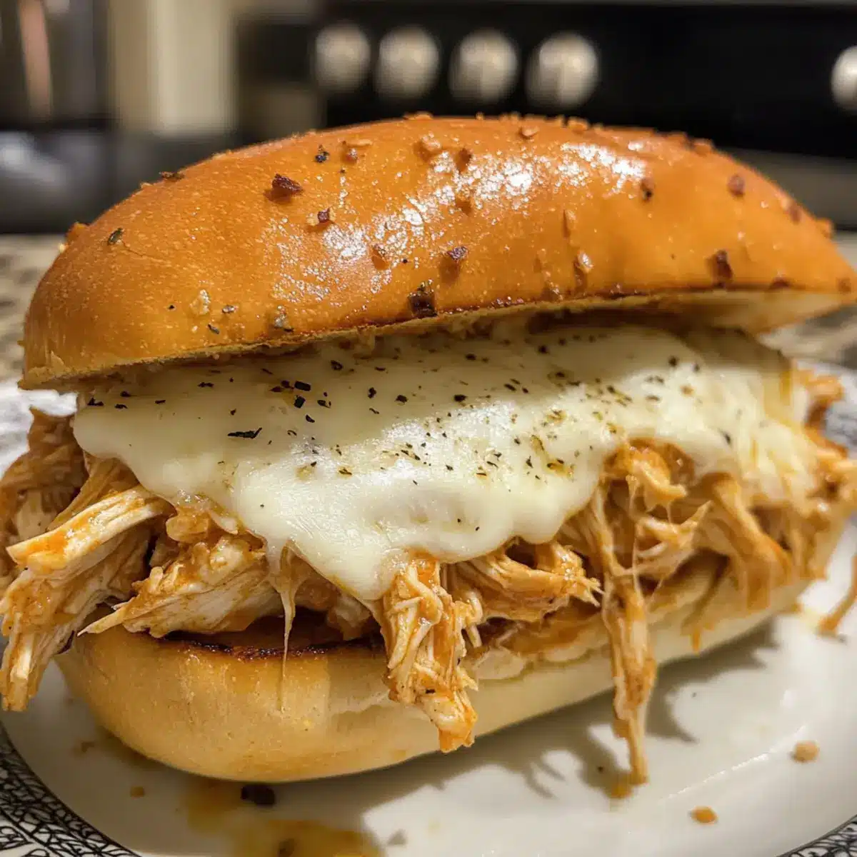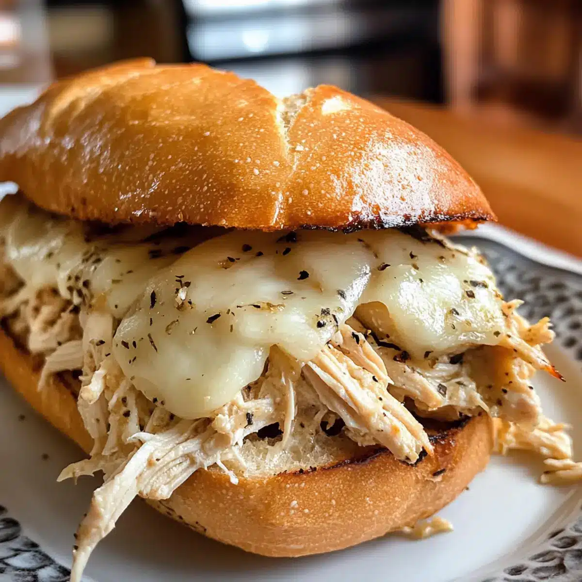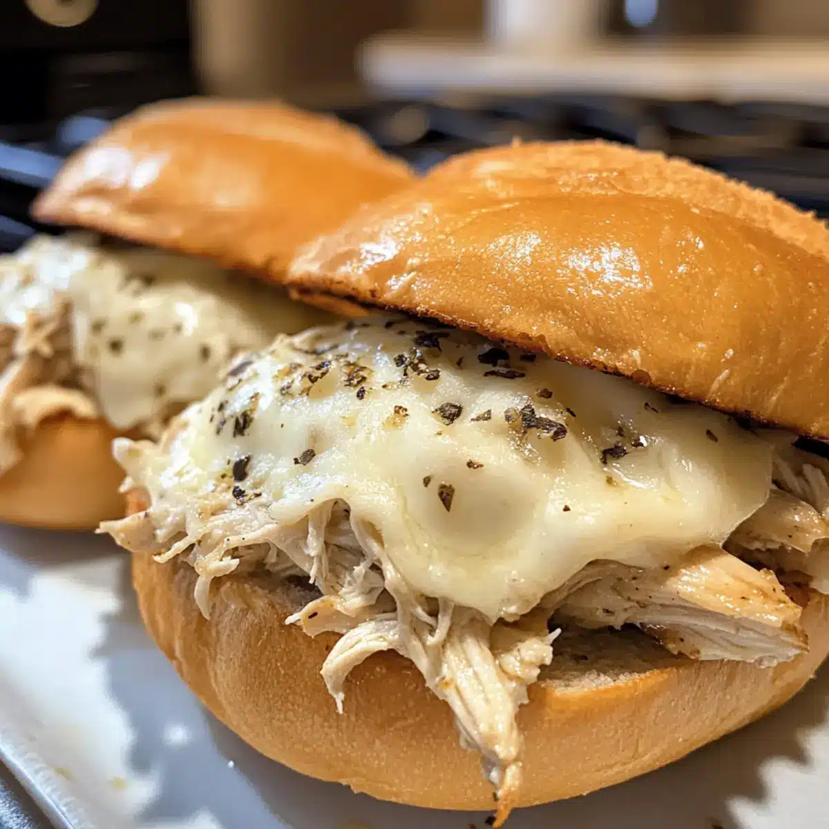 Parmesan Knoblauch Hähnchen Sandwich aus dem Slow Cooker