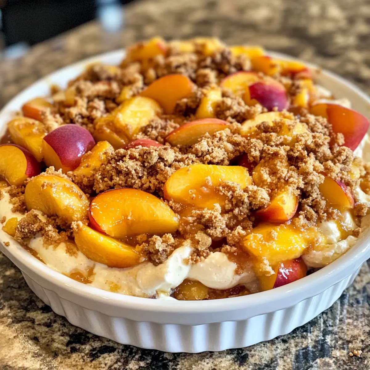 Pfirsich-Cobbler-Käsekuchen-Fruchtsalat für den Sommer