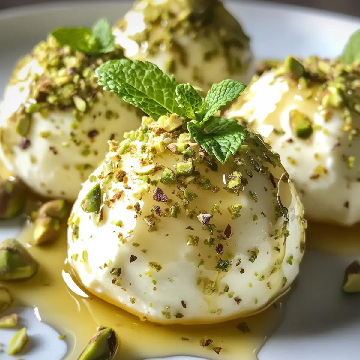 - Garnieren: Mit Honig und gemahlenen Pistazien garnieren.