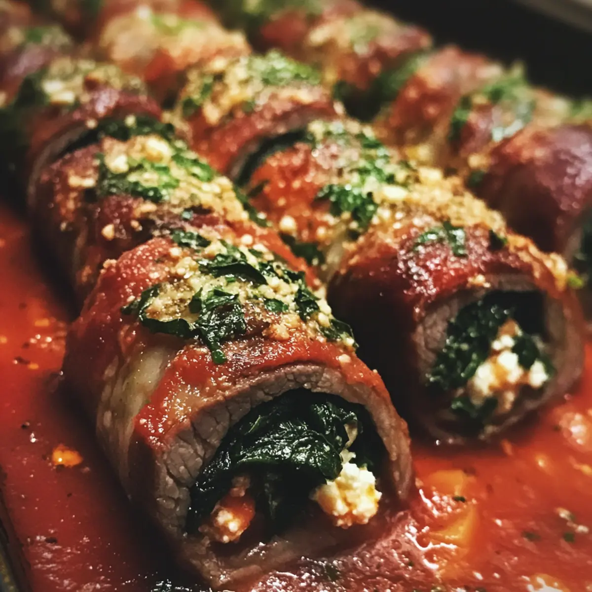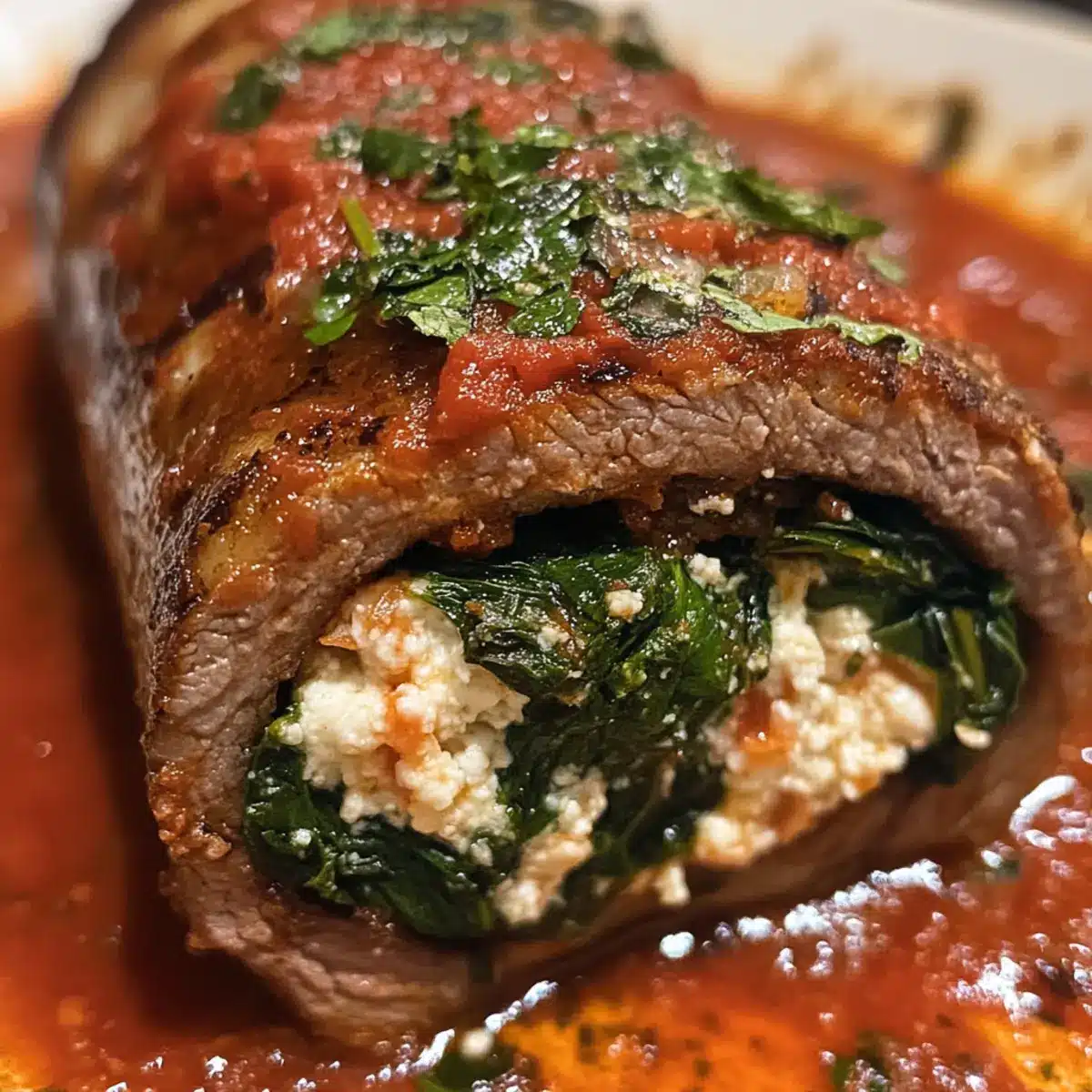 Ein köstliches Aroma zieht durch die Küche, während ich den zarten Rinderbrust Rollbraten vorbereite. Diese herzhafte Rinderbraciole ist nicht nur ein festliches Gericht, sondern auch die perfekte Antwort auf die Suche nach hochwertigem, hausgemachtem Essen, das die ganze Familie erfreut. Mit einer saftigen Füllung aus frischem Spinat, cremigem Ricotta und aromatischen Kräutern, eingehüllt in zartes Rindfleisch, wird jedes Stück euren Gaumen verwöhnen. Geschmort in einer würzigen Marinara-Sauce verwandelt sich dieser italienische Klassiker in einen wahren Comfort Food-Traum – ideal für beeindruckende Abendessen oder entspannte Familienessen am Wochenende. Und das Beste? Ihr könnt die Füllung ganz nach euren Vorlieben anpassen! Seid ihr bereit, eure Familie mit dieser herzhaften Köstlichkeit zu überraschen?