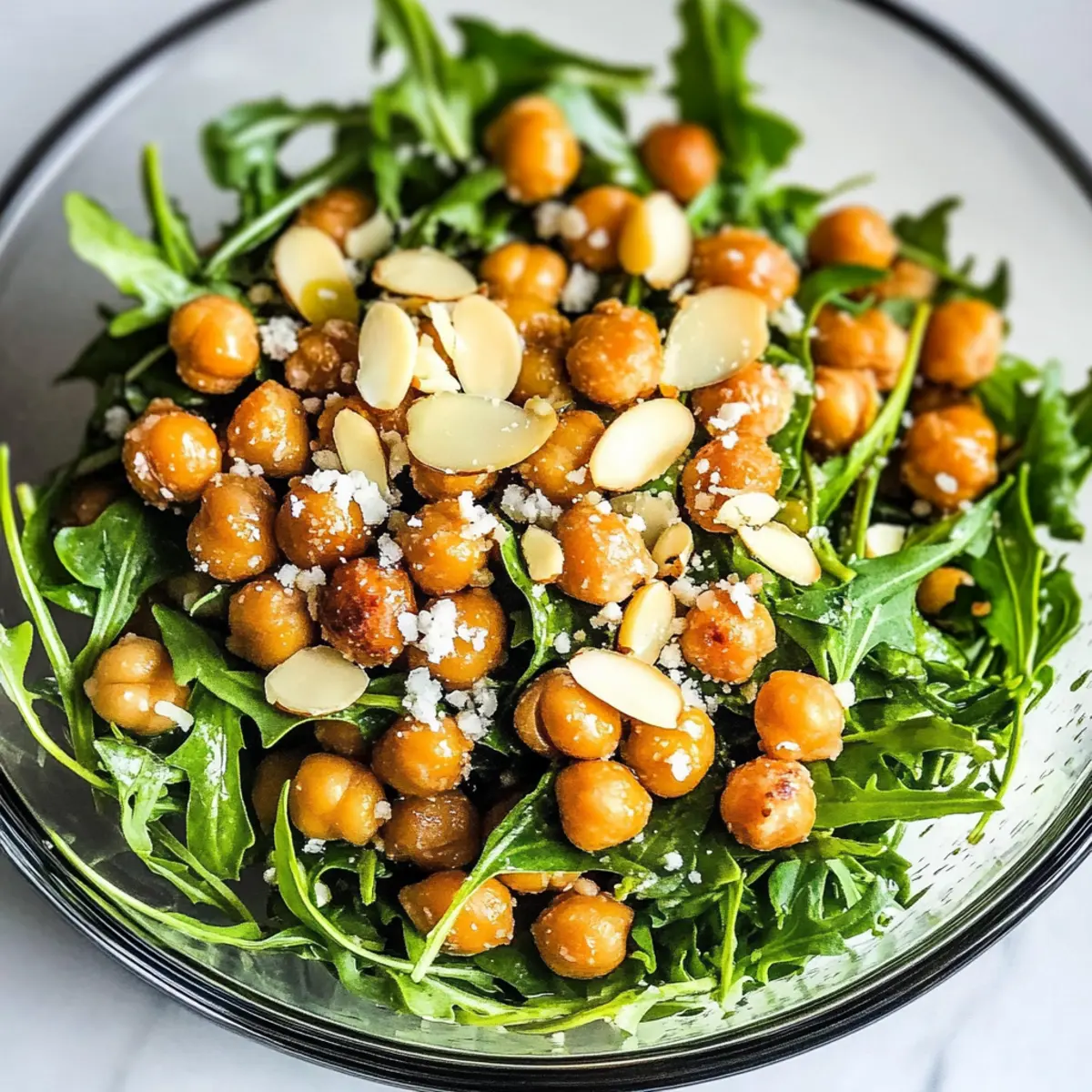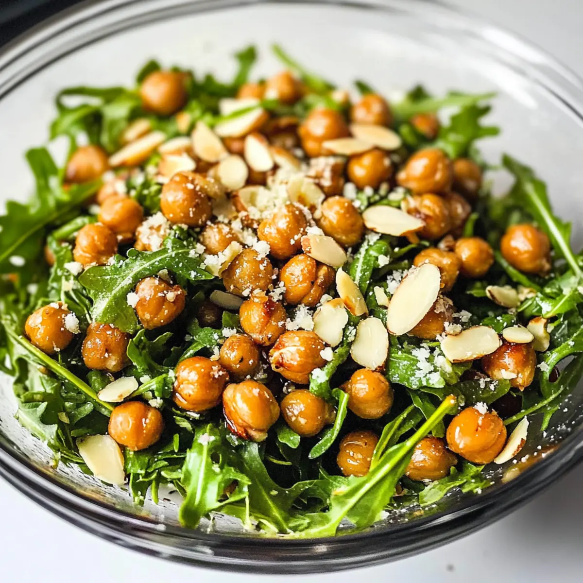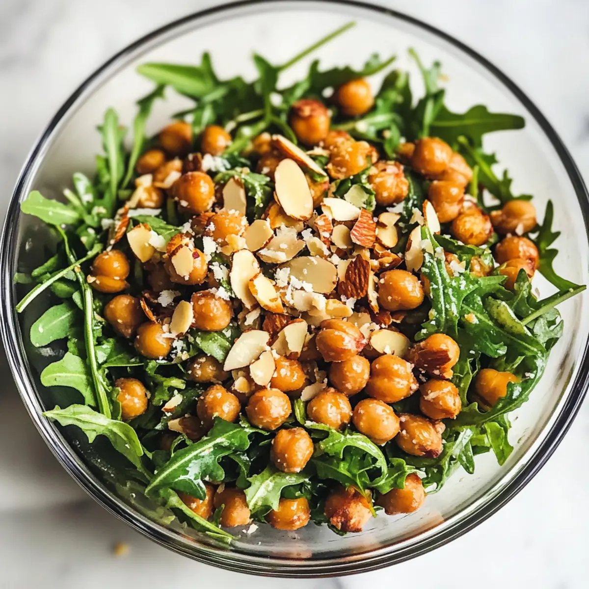 „Hast du schon einmal darüber nachgedacht, wie einfach es ist, ein farbenfrohes Gericht auf den Tisch zu zaubern, das sowohl köstlich als auch gesund ist? Mein Rucola Kichererbsensalat mit ofengerösteten Kichererbsen bringt frischen Schwung in deine Küchenroutine! Diese schmackhafte Kreation vereint knackige Kichererbsen, nussige Mandeln und eine erfrischende Vinaigrette aus Olivenöl, Honig und Zitrone. Diese schnelle Zubereitung ist perfekt für geschäftige Wochentage und sorgt dafür, dass du ganz ohne Fast Food auskommst. Egal, ob als leichtes Mittagessen oder als Beilage zu einem Grillabend, der Rucola Kichererbsensalat überzeugt mit seiner knackigen Textur und gesunden Zutaten. Bist du bereit, deiner Küche einen neuen Lieblingssalat hinzuzufügen?“