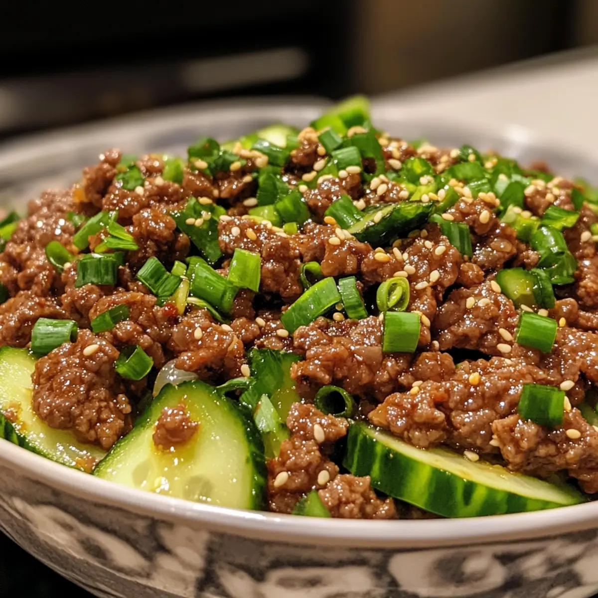 Scharfes Keto Koreanisches Rindfleisch mit Gurkensalat