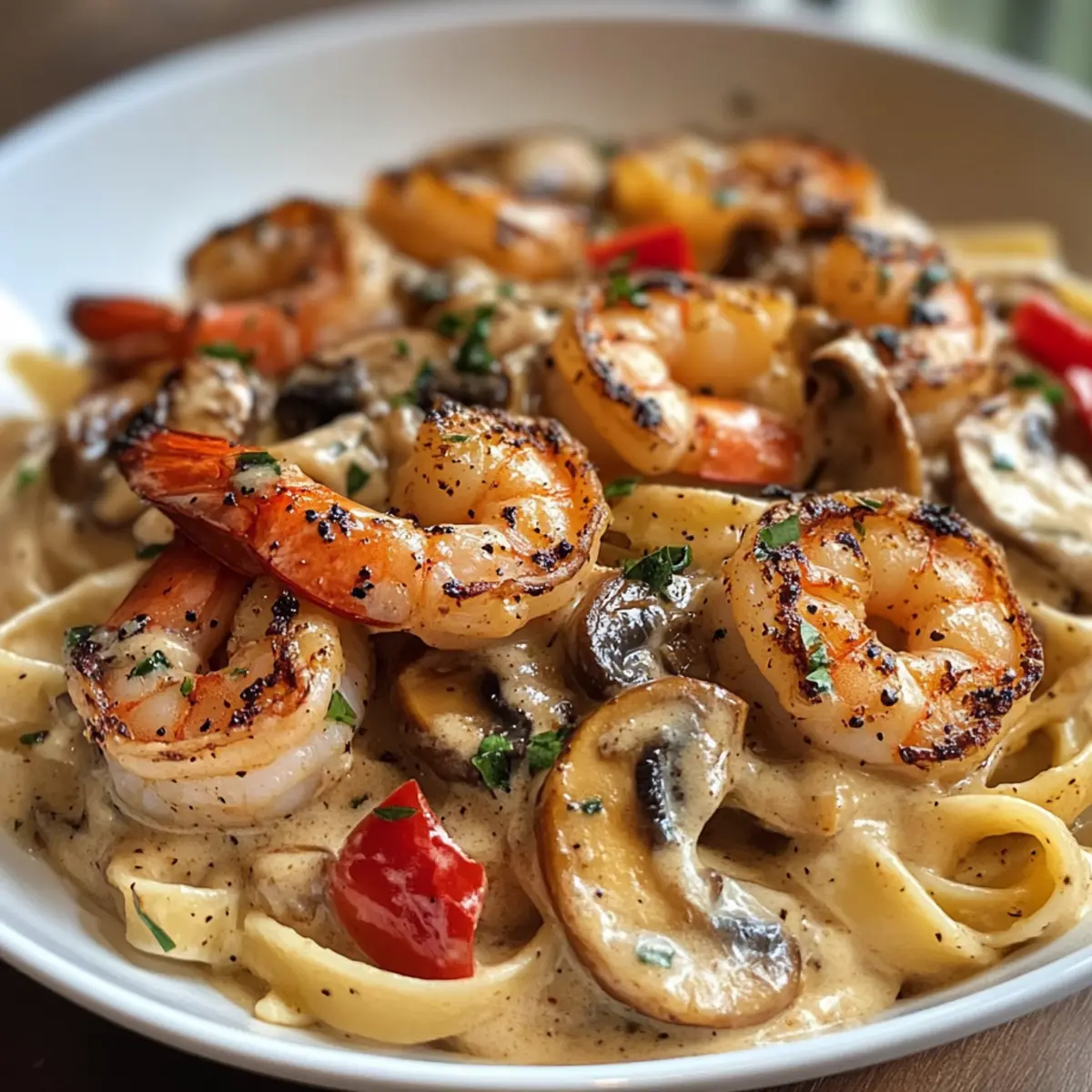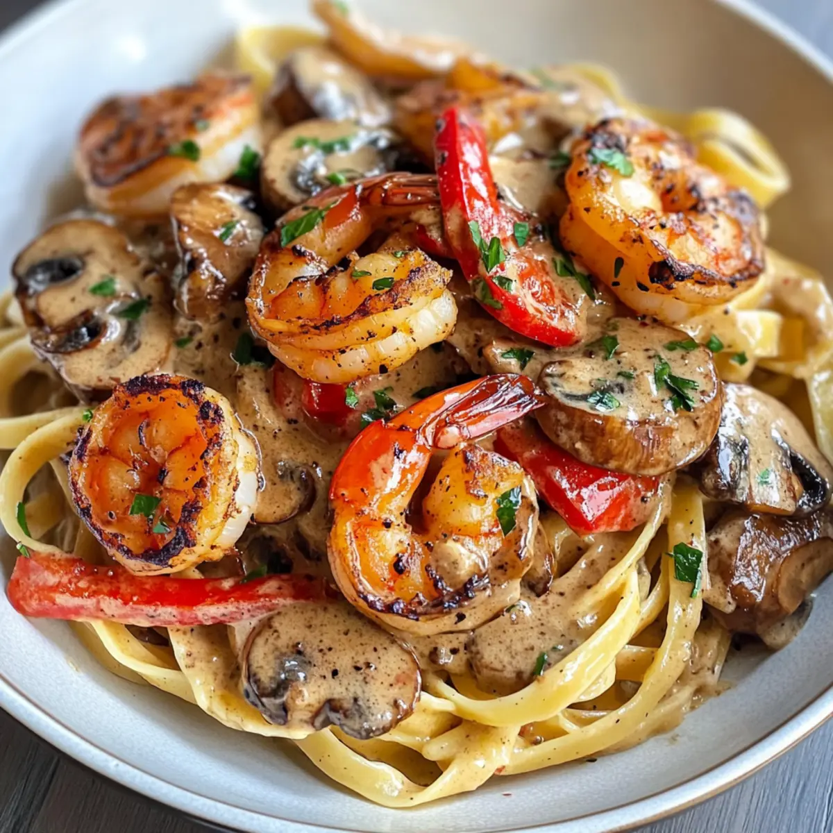 Die Schwarzgebratene Garnelen Stroganoff eignet sich hervorragend für die Vorbereitung im Voraus, um dir Zeit an hektischen Wochentagen zu sparen. Du kannst die Garnelen bis zu 24 Stunden im Voraus marinieren, indem du sie mit Olivenöl und Cajun-Gewürz vermischst und im Kühlschrank ruhen lässt; das intensiviert die Aromen. Die Soße kann bis zu 3 Tage im Voraus zubereitet und in einem luftdichten Behälter im Kühlschrank aufbewahrt werden. Achte darauf, die gekochte Fettuccini-Nudeln separat zu lagern, um ein Verkleben zu vermeiden. Wenn du bereit bist zu servieren, erhitze einfach die Soße und kombiniere sie mit den frisch gekochten Nudeln für ein ebenso köstliches wie zeitsparendes Abendessen!
