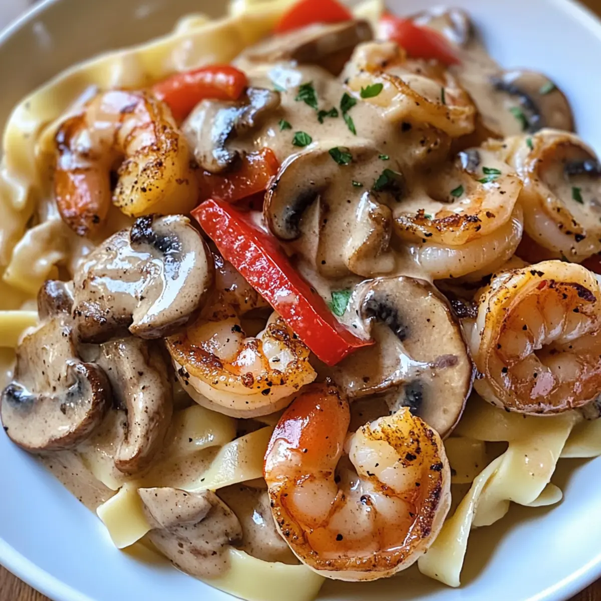 Erlebe die perfekte Kombination aus Komfort und Geschmack mit diesem einzigartigen Schwarzgebratene Garnelen Stroganoff!
