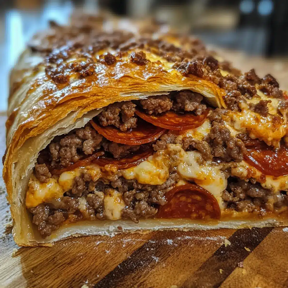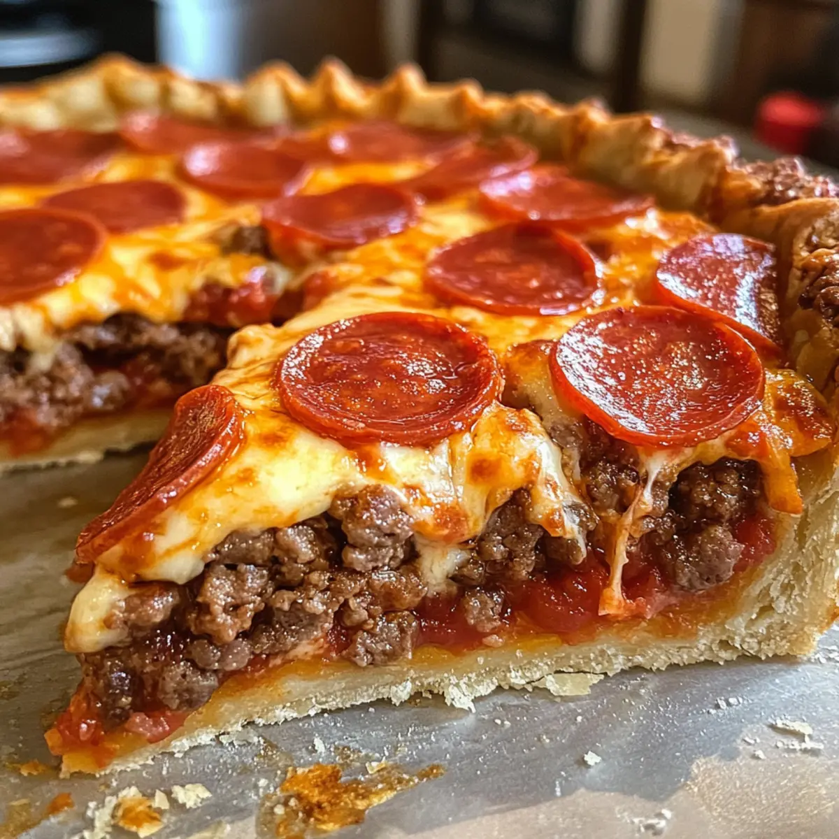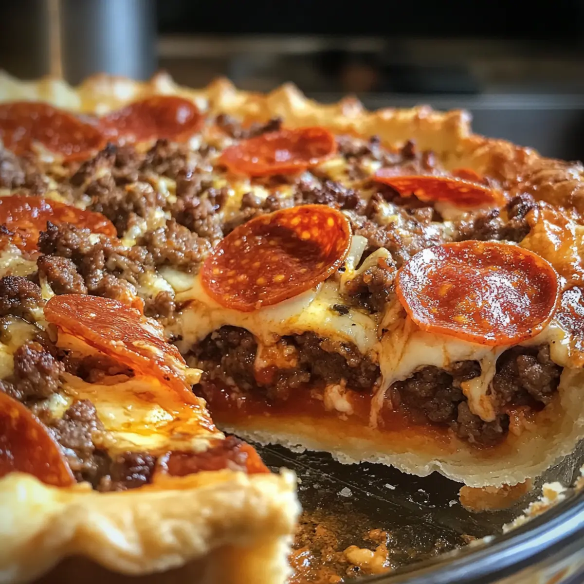 - Perfekte Bräunung: Achte darauf, das Fleisch gut anzubraten, um maximale Aromen zu erzielen und eine köstliche Basis für deinen tiefen Hamburger-Wurst-Peperoni-Pie zu schaffen.