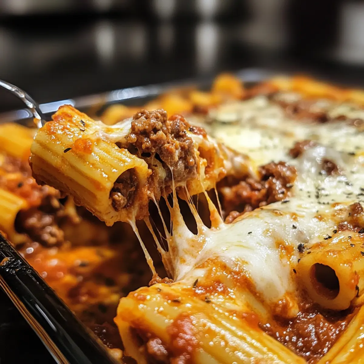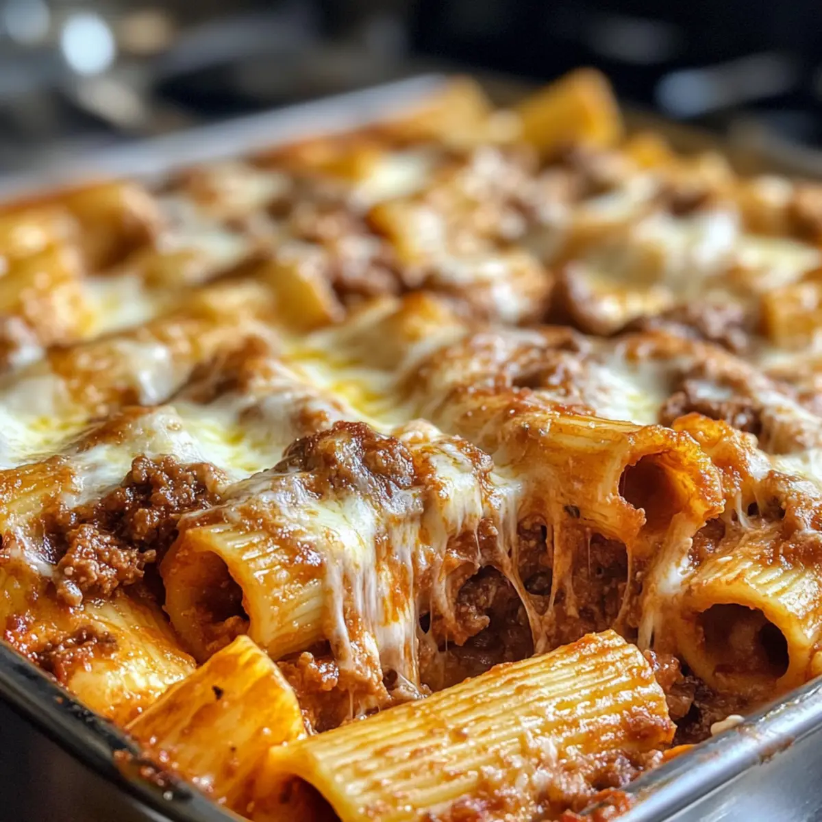 Überbackene Rigatoni mit Rindfleischragout genießen