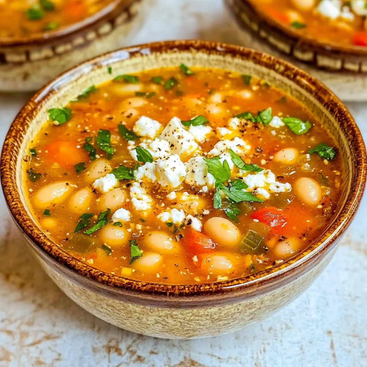 In einer kleinen, lebhaften Küchenecke hörte ich, wie mein Freund die Vorzüge einer herzhaften Weißen Bohnensuppe lobte, die er letztens probiert hatte. Diese mediterrane Weiße Bohnensuppe ist nicht nur ein wahres Wohlfühlessen, sie vereint köstliche, farbenfrohe Gemüse mit würzigen Aromen und einem cremigen Finish aus Feta- und Parmesan-Käse. Perfekt für hektische Wochentage, ist dieses Gericht sowohl nahrhaft als auch unwiderstehlich befriedigend und verwandelt alltägliche Vorräte in ein geschmackvolles Erlebnis. Außerdem ist sie vegetarisch und glutenfrei – ideal für jede Essensvorliebe! Ich kann es kaum erwarten, euch die Schritte zu zeigen, wie ihr dieses traumhafte Rezept ganz einfach zubereiten könnt. Seid ihr bereit, euren Gaumen zu verwöhnen?
